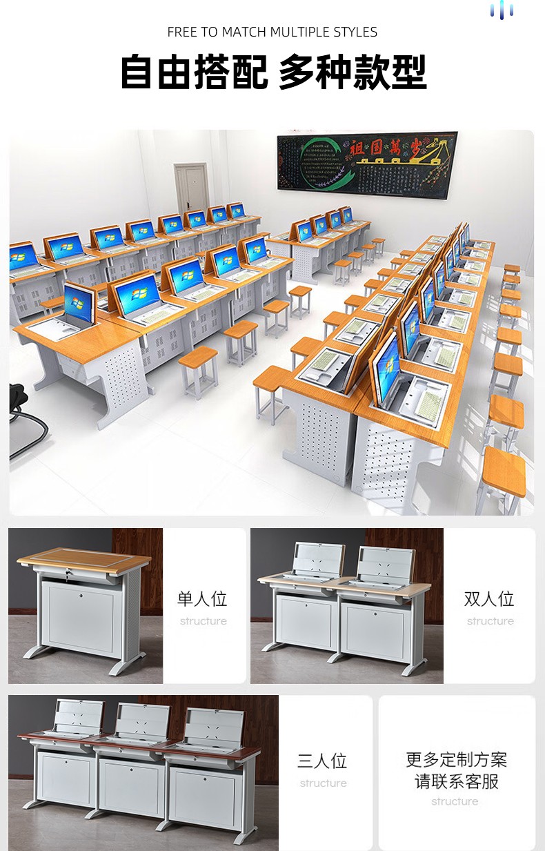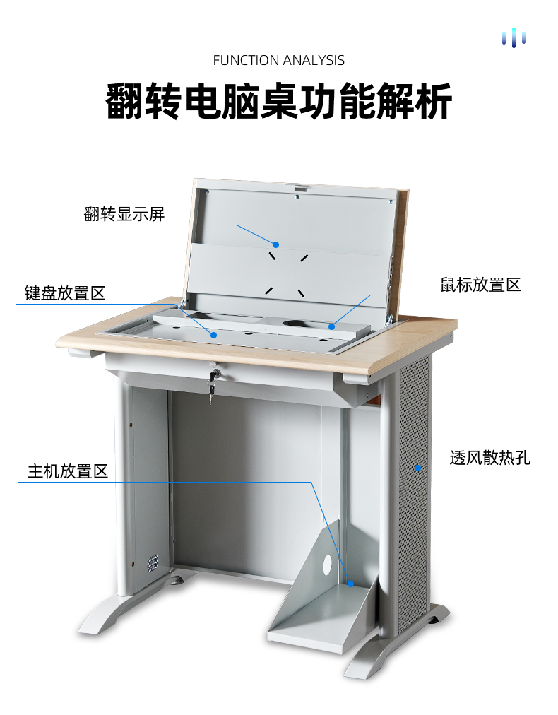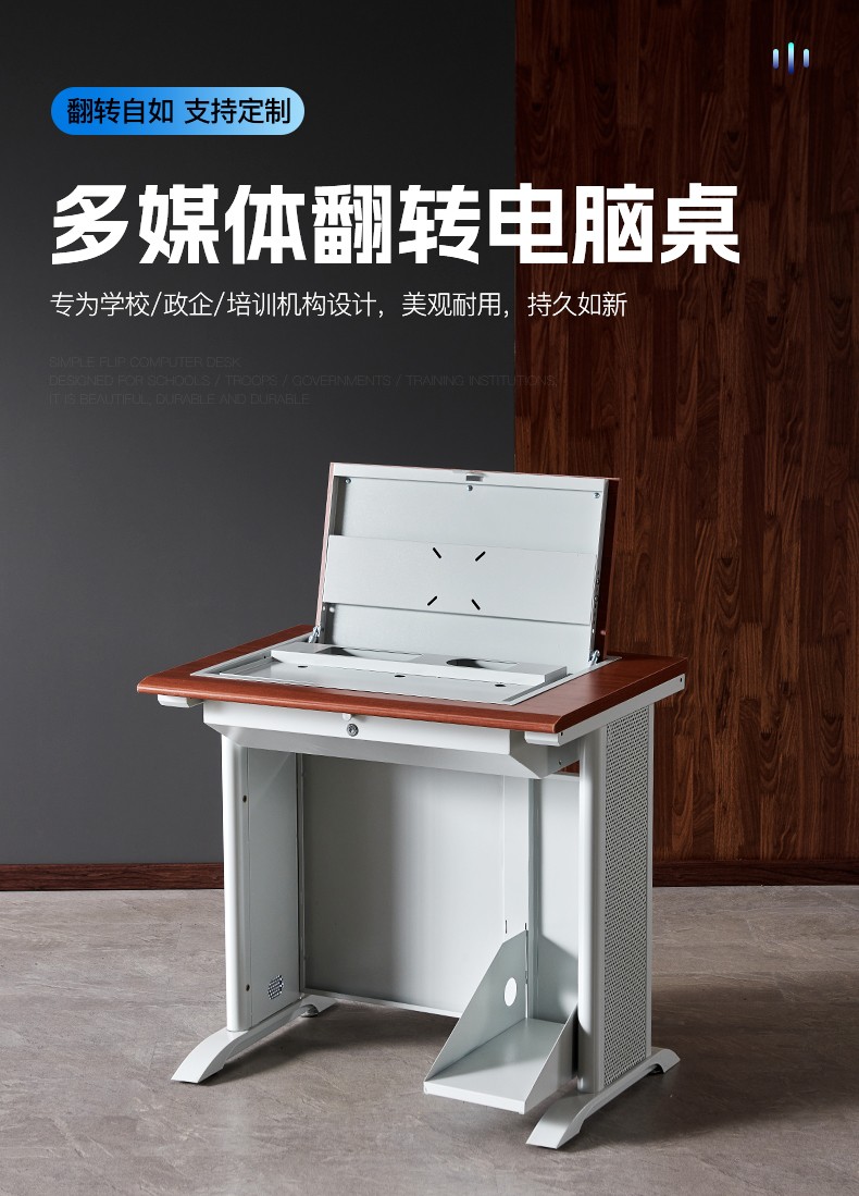 老式腿翻轉(zhuǎn)電腦桌二人位